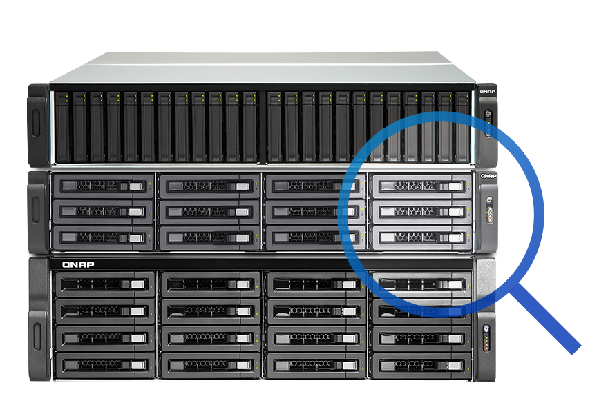 QTS Storage Manager предлагает ряд полезных инструментов и опций для управления системным хранилищем с помощью интуитивно понятного графического интерфейса пользователя, который упрощает процесс увеличения емкости NAS и управления модулями REXP-1210U-RP. Администраторы ИТ могут с легкостью отслеживать состояние модуля REXP-1210U-RP и установленных в нем дисков. При каскадном соединении нескольких модулей расширения в стойке администраторы ИТ могут быстро найти нужный модуль или нужный диск с помощью функций Locate Disk (Найти диск) и Locate Enclosure (Найти модуль).