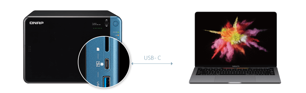 Порт USB QuickAccess позволяет быстро осуществить начальную настройку и запуск устройства в работу без доступа по сети. С помощью утилиты Qfinder Pro* можно получить прямой доступ к хранящимся данным, подключившись кабелем USB-С, как при работе с обычным внешним USB-диском. При этом в целях безопасности предусмотрено разграничение прав пользователей для исключения несанкционированного доступа.